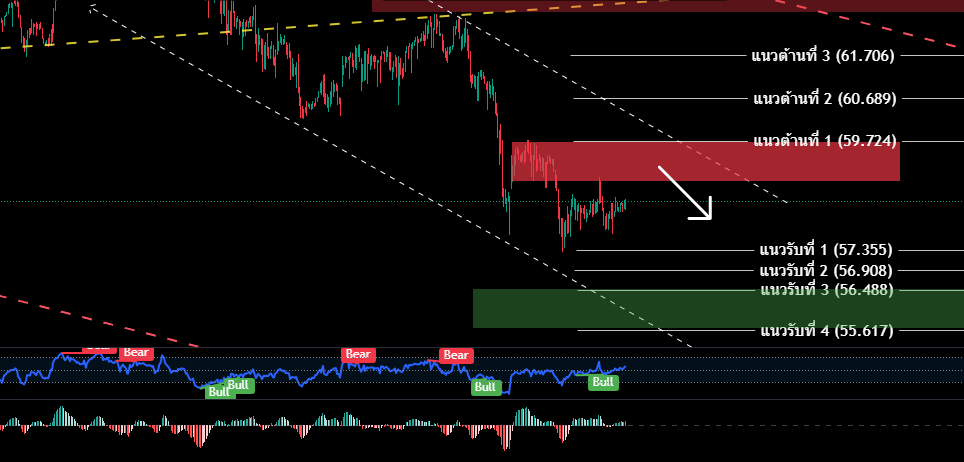 - เปิดสถานะขาย (รอสัญญาณขาย)ที่กรอบ 58.841-59.708/ SL 60.000 เพื่อทำกำไรที่ 58.721/58.558/58.475/58.276/57.794/57.625/57.364