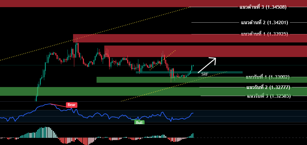 - เปิดสถานะซื้อ (รอสัญญาณซื้อ) กรอบ 1.33070-1.33124 / SL1.32814 เพือทำกำไร 1.33198/1.33246/1.33246/1.33280/1.33342/1.33400