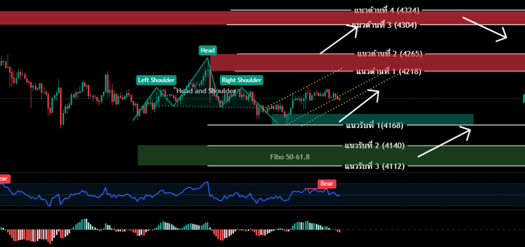– หากราคายืนเหนือ 4265 (ปิดแท่ง H1 เหนือ 4265) เปิดสถานะซื้อ กรอบ 4265-4218 / SL 4210 เพื่อทำกำไร 4275/4285/4295