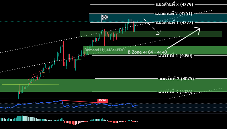 พิจารณา ราคา 4165 หากยืนขึ้นได้ ยังไม่เสียโมเมนตัมขาขึ้น แต่ต้องระวัง ไม่ไล่ซื้อ เนื่องจากเริ่มปรากฎ Bearish H1