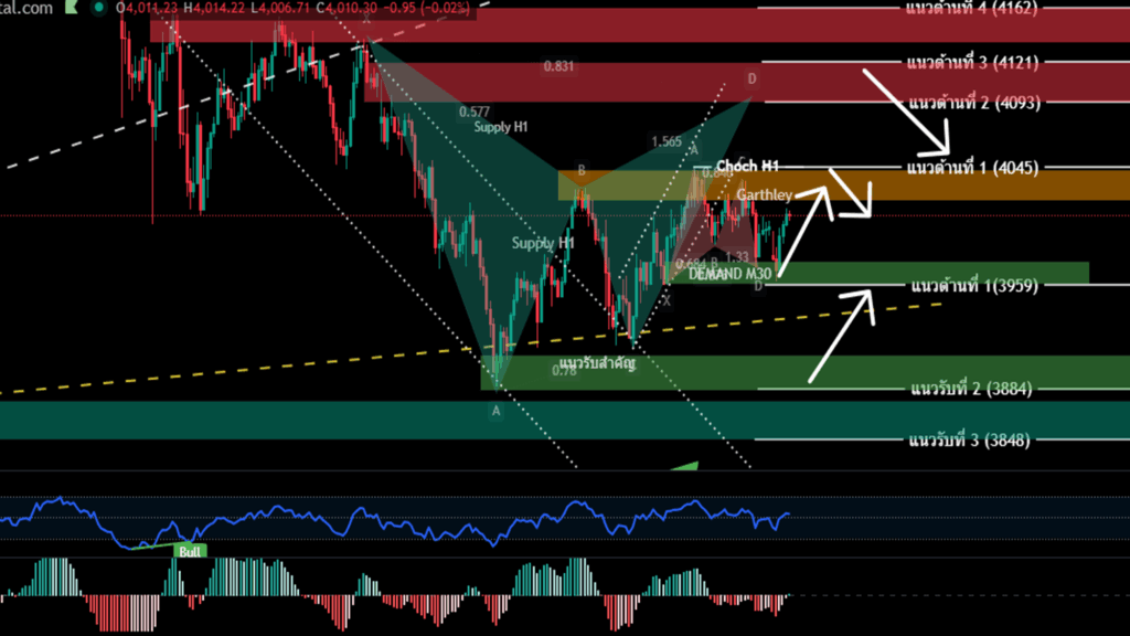 – เปิดสถานะขาย หากราคาสามารถปิด H1 ต่ำกว่า 4021 ได้ / SL 4050 เพื่อ ทำกำไร 4040/4035/4030/4025/4015/4000