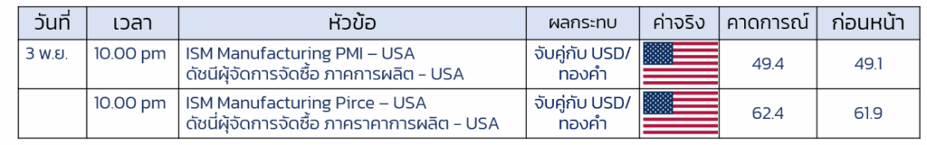 - หากตัวเลข ดัชนี้ Manufacturing PMI มากกว่า50 คาด เศรษฐกจ ภาคการผลิตขยายตัว ปัจจัยบวกต่อ USD กดดัน ทองคำ