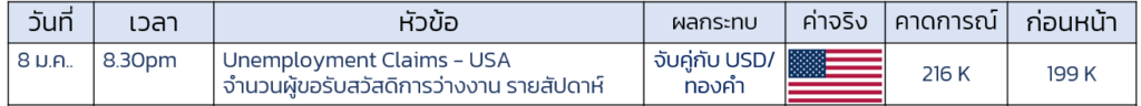- ติดตามตัวเลขจำนวนผู้รายสัปดาห์ หากตัวเลขออกมา น้อยกว่า 100 K เป็นปัจจัยบวก USD กดดัน น้ำมัน / แต่หากตัวเลขยังคงอยู่ที 2xx K จะเป็นผลกดดัน USD ปัจจัยบวกทอง