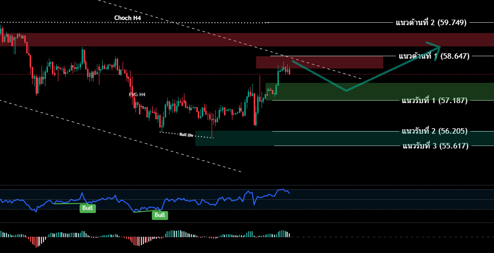 - เปิดสถานะซื้อ (รอสัญญาณซื้อ)ที่กรอบ57.388-57.770/ SL 57.850 เพื่อทำกำไรที่ 57.870/57.911/57.980/58.029/58.189/58.243